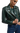 A woman wearing a green vegan leather moto jacket with gold hardware, paired with blue jeans. A woman wearing a green vegan leather moto jacket with gold hardware, paired with blue jeans.